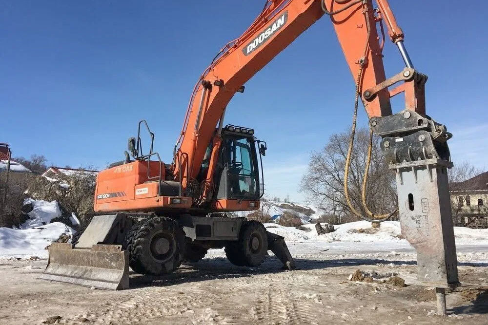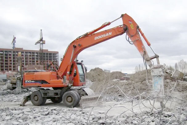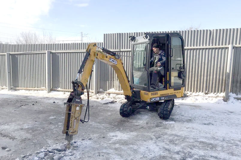 Спецтехника укомплектована гидромололотом, ковшами (узкий, стандарный и широкий) и тромбовкой. Смена навесного оборудования занимает 5 минут.